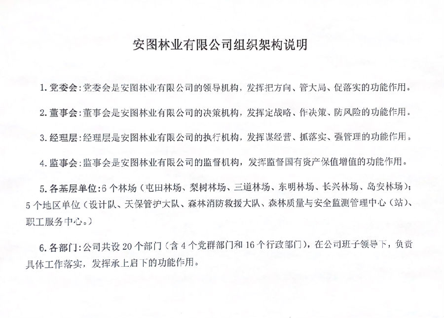 安圖林業(yè)有限公司 (機關(guān))組織架構(gòu)
