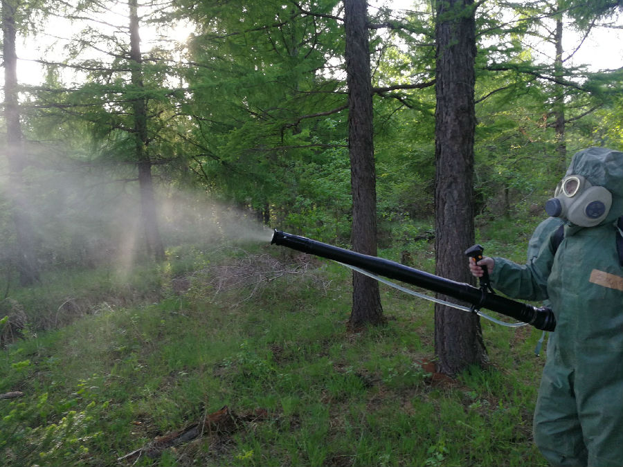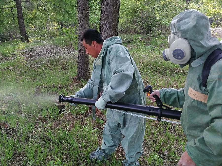 2019年6月1日,安圖林業(yè)有限公司島安松林中機(jī)器轟鳴、白煙滾滾,這是防治專業(yè)工作人員正在林間噴施煙霧藥劑除治松毛蟲。而這僅僅是森防員們的日常工作的縮影。